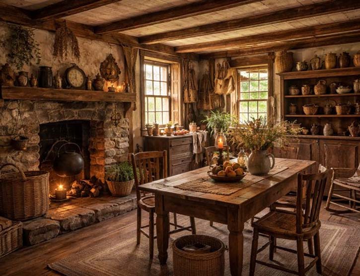 Homemade Decor Inside Design of Antique Homestead – Handcrafted décor adds soul to the living…